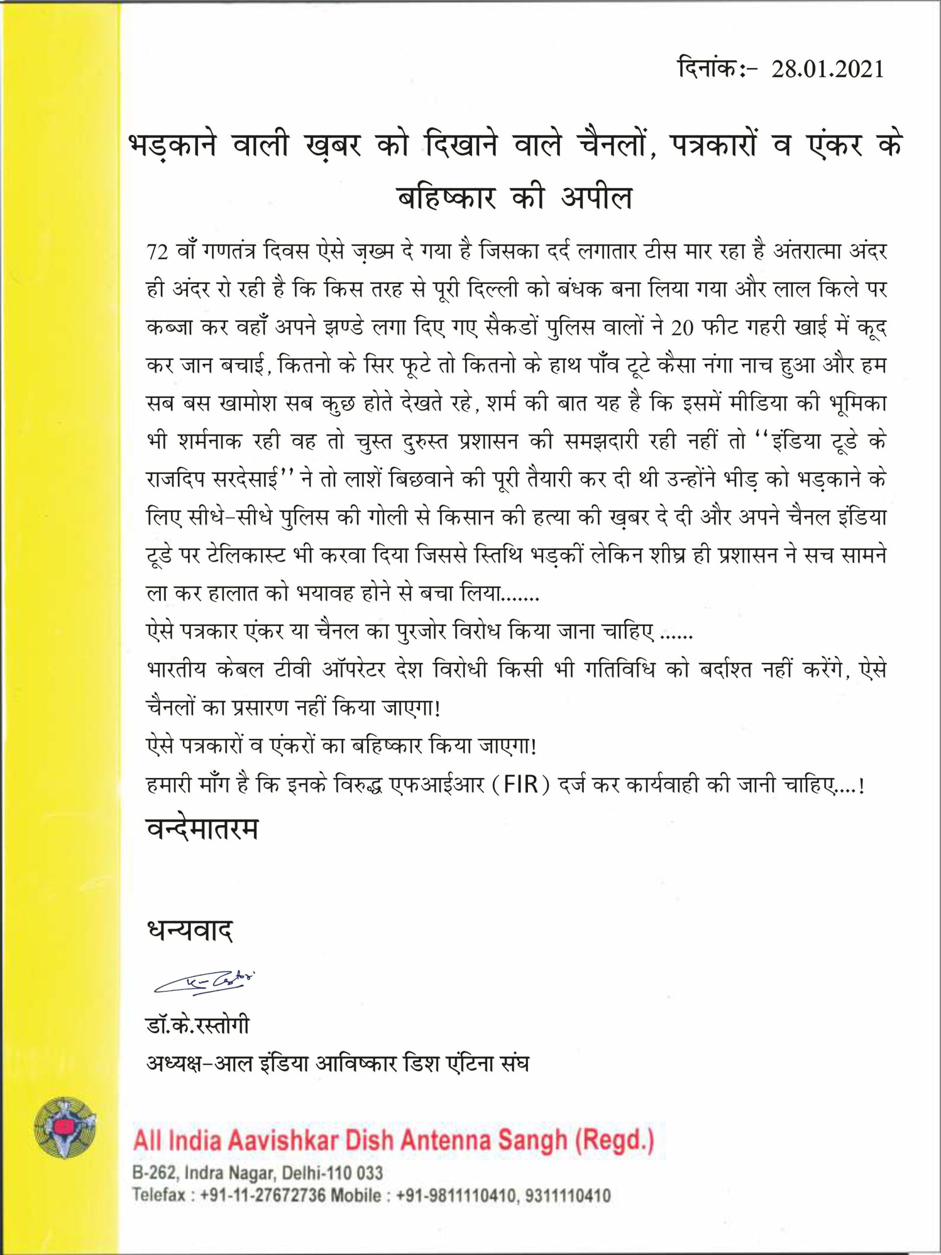 हमारी माँग है कि इनके विरुद्ध एफआईआर (FIR) दर्ज कर कार्यवाही की जानी चाहिए….!