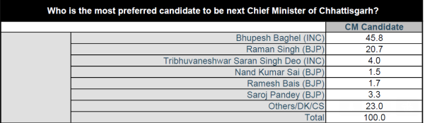 Bhupesh Baghel is favored as Chief Minister by 45.8 percent of voters.