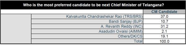 KCR remains a popular choice for the Chief Minister post, with 37 percent voter support.
