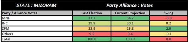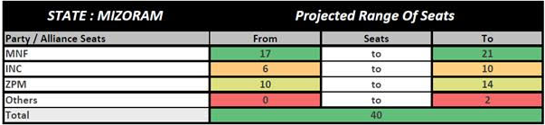 The MNF is likely to win 17-21 seats in the 40-seat assembly, outperforming the Congress, which is projected to win 6-10 seats.