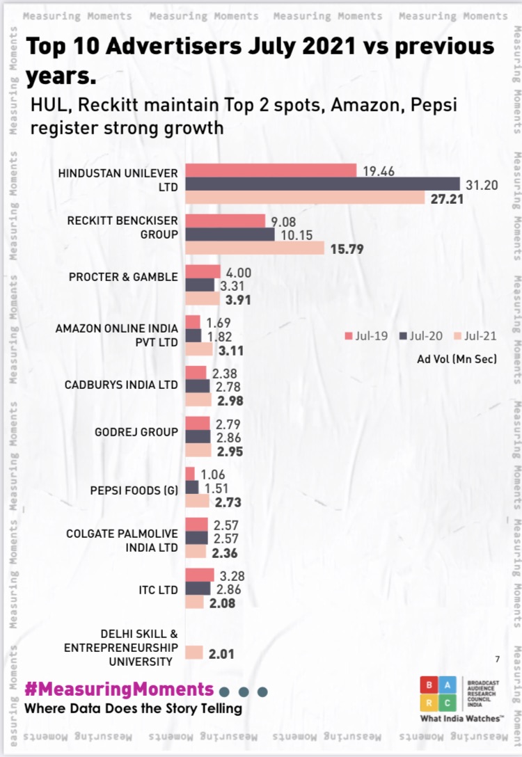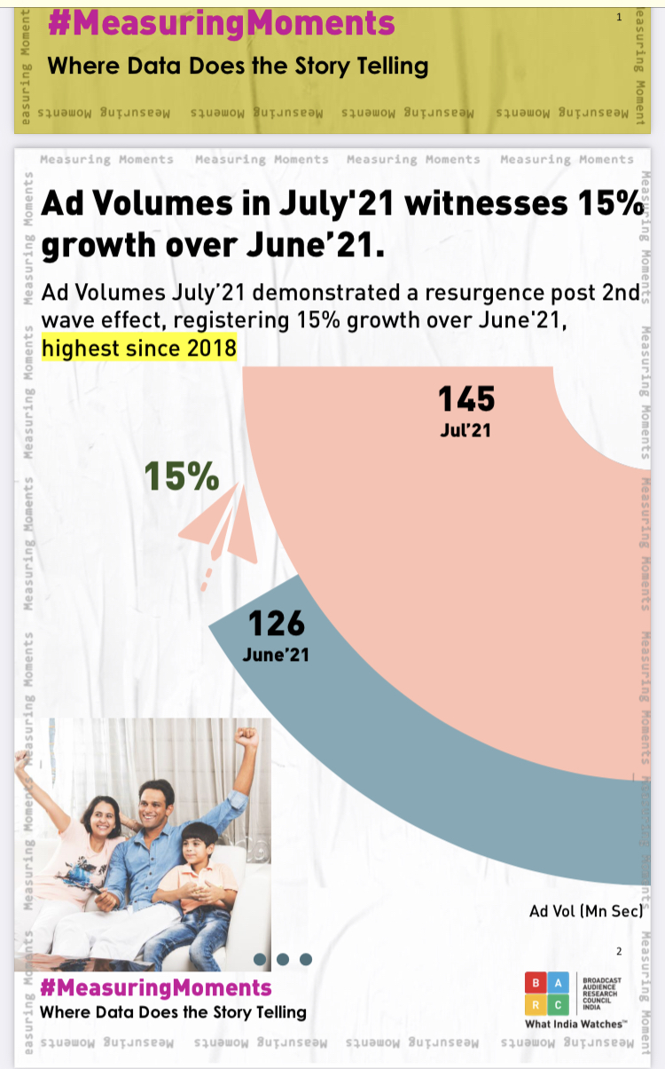 Followed by the strong positive trend for television ad volumes in H1 2021, July 2021 re-affirms the advertisers’ trust in the medium as 869 new advertisers came on board in July 2021 and ad volumes registered 23 percent growth vis a vis July 2019 and 14 percent growth over July 2020.