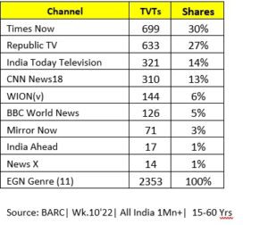 MK Anand said, “The last two years have been extremely tough, with the pandemic transforming the world. People’s lives changed dramatically altering consumer behavior across all categories, be it food, fashion, holidays, entertainment, or news consumption. The news space saw an added disruption with alleged malpractices unearthed in the rating system impacting viewer sentiment. All in all, there was trepidation when approaching the date, as to how News consumption has changed and how that would impact our shares. We are happy to note that our efforts to keep up with changing consumer preferences have been reciprocated by viewers.”