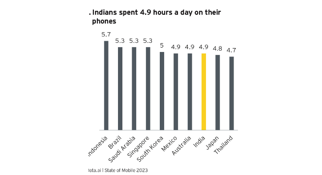 With comparatively cheap data available these days in India, at 4.9 hours per day, Indians came eighth in the world for the most amount of time spent on phone apps in 2022,which is a 32 percent growth since 2019.