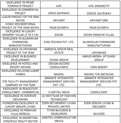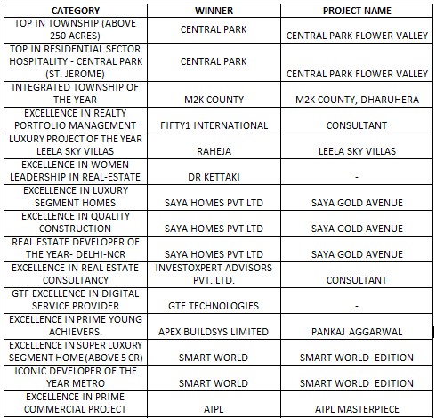The conclave celebrated excellence in real estate, honoring 35 winners across various categories. The winners were selected through a rigorous nationwide submission and screening process evaluated by Tenfold. Some notable awardees included: