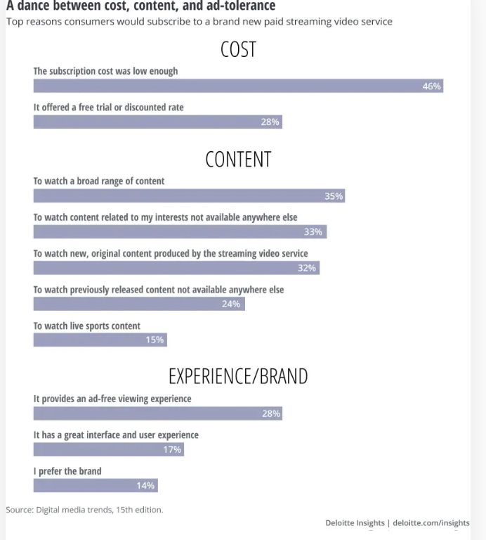 With greater cost sensitivity, subscribers may want more pricing options based on their usage and ad tolerance, and an easy way to move between tiers to meet their needs and level of engagement, Deloitte observed.