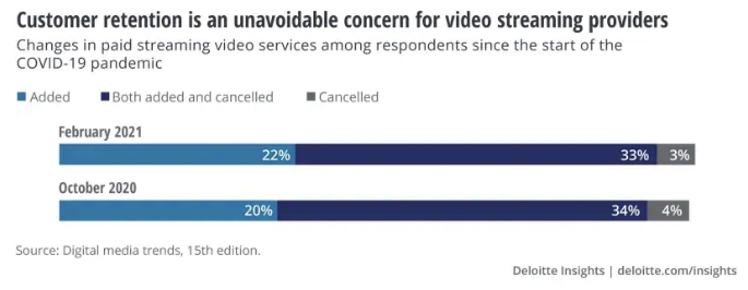 These challenges reinforce subscriber churn. From October 2020 to February 2021, the churn rate for streaming video services held at around 37%.