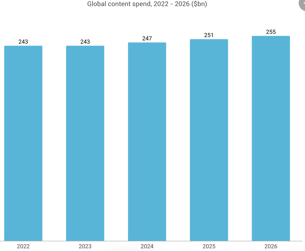 Specialized market research and data analytics firm focused on the media, entertainment, telecoms, sports and gaming industries Ampere’s latest analysis forecasts that global content investment will reach $255 billion in 2026, rising two percent year-on-year.