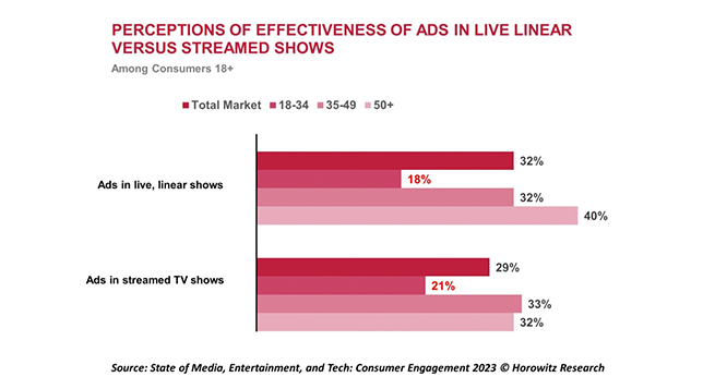 “The fact that younger consumers find ads in TV shows less effective is a reflection of their media behaviours and how the TV industry has evolved. Young people are heavy users of subscription streaming services that are generally not ad-supported, and have pretty much gravitated away from ad-supported live TV,” noted Adriana Waterston, EVP and Insights & Strategy Lead at Horowitz Research.