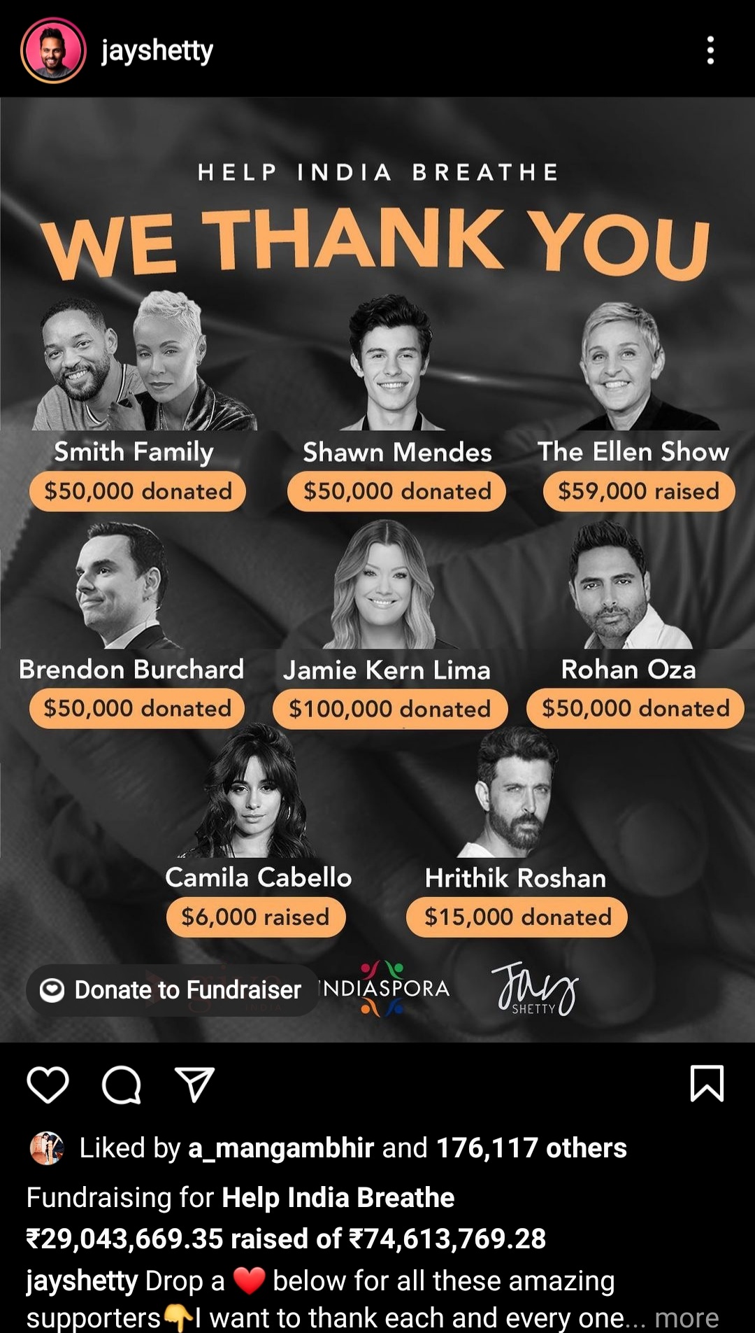 Thanking everyone who participated in the fundraiser, Jay said in his post, “My heart is filled with joy knowing that lives will be helped and saved. This is just the beginning! We have a lot of work to do.” Reacting to the amount collected, Hrithik wrote, “Congratulations Jay and Radhika…amazing”.
