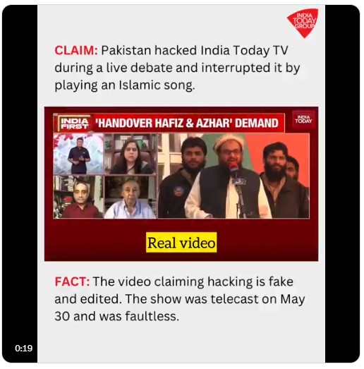 India Today Group has issued a strong clarification denying claims that Pakistan hacked its live television debate. A viral clip circulating on social media, which purports to show a broadcast being interrupted or taken over, has been labelled ‘fake’ by the network’s fact-checking team.