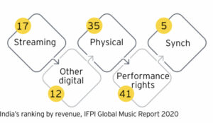 Despite performance rights witnessing a decline of around 67 per cent in 2020 due to pandemic-related lockdown, the Indian music segment is expected to grow at 15 per cent CAGR piggybacking increasing digital revenues, according to the Ficci-E&Y media and entertainment report 2020.