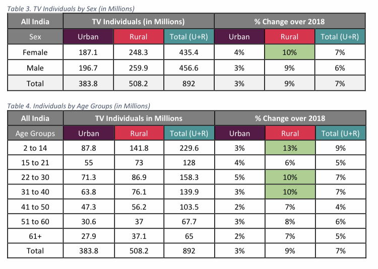 Markets: TV households in urban markets grew by 4% from 87.8 million in 2018 to 91 million, while rural markets have grown by 9%, up from 108.9 million to 119.2 million in 2020. While TV households across India grew by 6.9%, Hindi-speaking market (HSM) grew by 8% outpacing all-India as well as the South Indian states that grew by 5%.