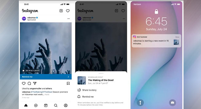 “People can sign up for convenient reminders and receive three notifications from Instagram one day before, 15 minutes before, and during the event,” according to the blog post.