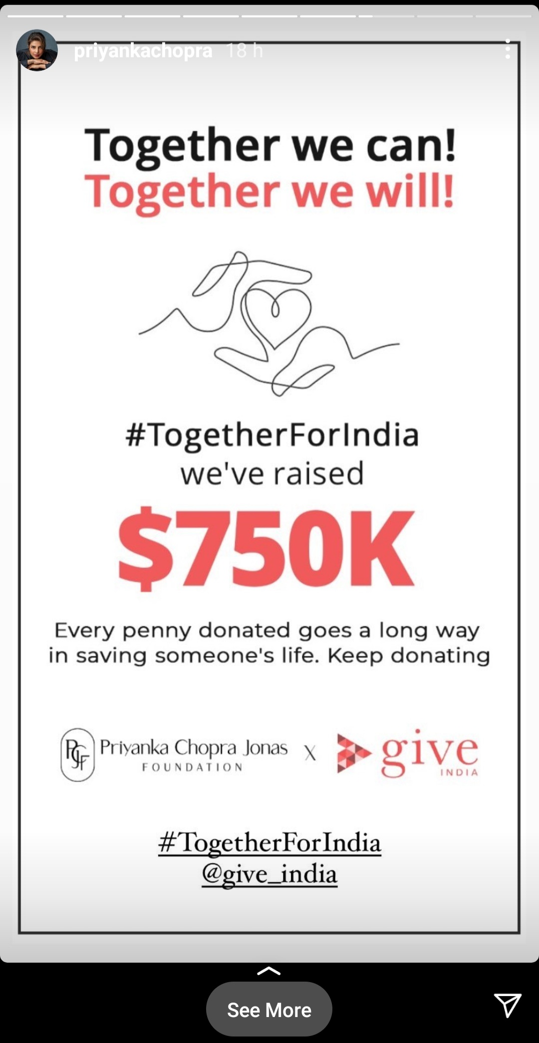 Priyanka had earlier announced her association with the non-profit Give India to set up a fundraiser to help India grapple with the COVID crisis.