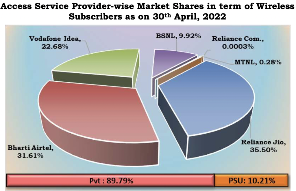 Overall, TRAI data showed that India’s total wireless subscribers count increased marginally to 114.3 crore at the end of April 2022.