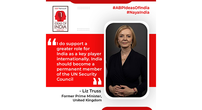 Former British Prime Minister Liz Truss believes India should play a larger role as a key global player and become a permanent member of the UN Security Council. On her first visit to Mumbai, she spoke at the ABP Networks “Ideas of India” summit on Friday morning, emphasizing the need for a rethinking of the UN Security Council and advocating for India to play a larger role in the world body.