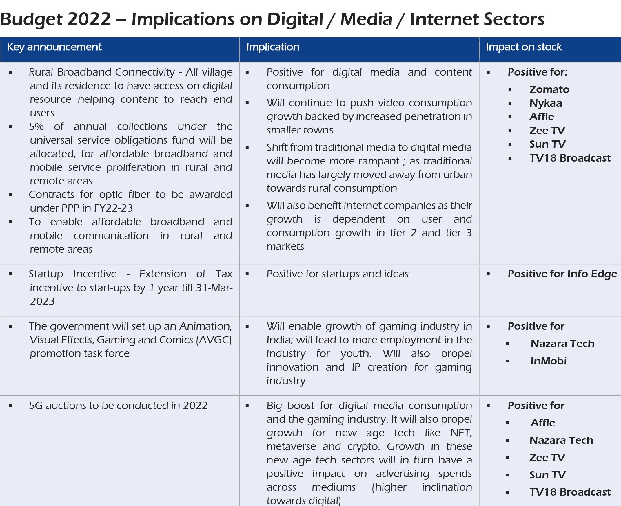 The Union Budget 2022 had a strong focus on digital push and digital consumption; there were multiple factors which augurs well for boosting growth in digital media. Some of them are enclosed below: