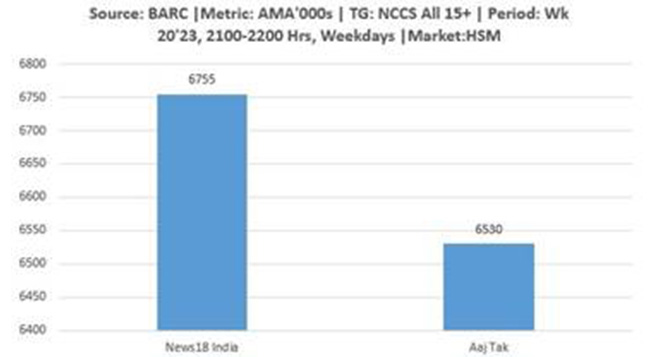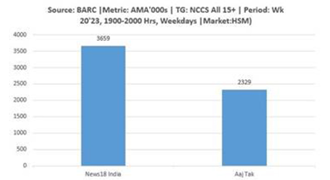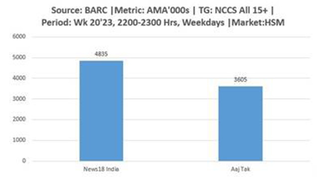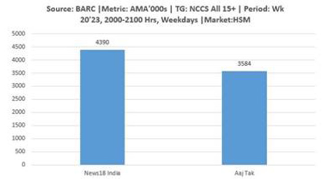 The new BARC data indicates that News18 India has established a comprehensive leadership in the Hindi genre and has surpassed Aaj Tak across all prime time bands.