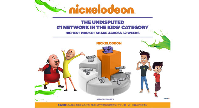 Building the category through immersive storytelling and path-breaking innovation, Viacom18’s kids’ franchise, Nickelodeon has established leadership in the kids’ entertainment space and enjoys a cumulative network share of 32 percent within the genre.