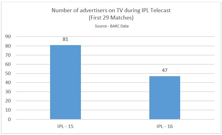 According to the data, the IPL has only attracted 47 advertisers on TV this year. In the previous season, this figure was 81.