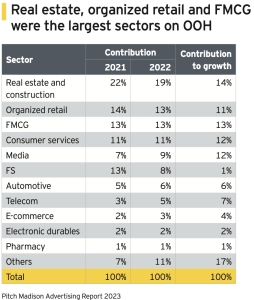 ► Real estate, organized retail and FMCG were the largest advertisers on OOH.
