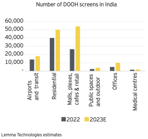 ► Other drivers of growth would be the rapid addition of roadways, metros, airports, commercial establishments, etc. which will provide increased premium inventory, as well as the development of smart cities, which will integrate screens at several new areas such as charging stations, building exteriors, offices, etc.
