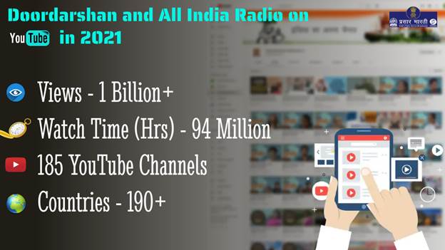 With audiences spanning across 190+ countries, more than 185 YouTube channels of Doordarshan and All India Radio together registered more than a billion views in 2021. Their ‘watch time’ for the entire duration of 2021 sums up to a stupendous figure of 94 million hours.