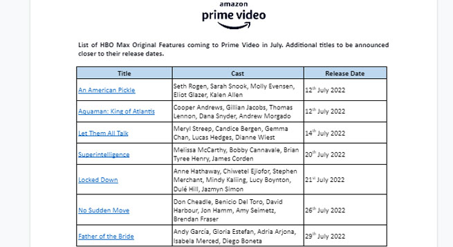 This is in addition to HBO Max’s original features like ‘An American Pickle’, ‘Aquaman: King of Atlantis, Let Them All Talk’, ‘Superintelligence’, and many more.