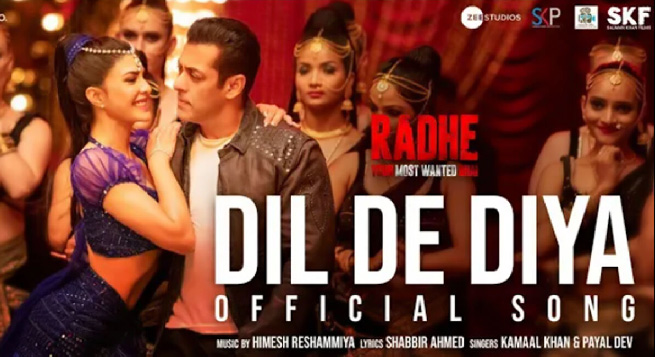 सलमान खान की आने वाली फिल्म ‘राधे – योर मोस्ट वांटेड भाई’ का गाना ‘दिल दे दिया’ रिलीज़ हो गया है। गाने में सलमान और अभिनेत्री जैकलीन नजर आ रही है। बता दें कि ये गाना एक आइटम नंबर है, जिसका म्यूजिक हिमेश रेसमिया ने दिया है। वहीं कमाल और पायल ने गाने को अपनी आवाज दी हैं। 2.30 मिनट के इस गाने में सलमान खान और जैक्लीन की कमाल की केमिस्ट्री नजर आ रही हैं।