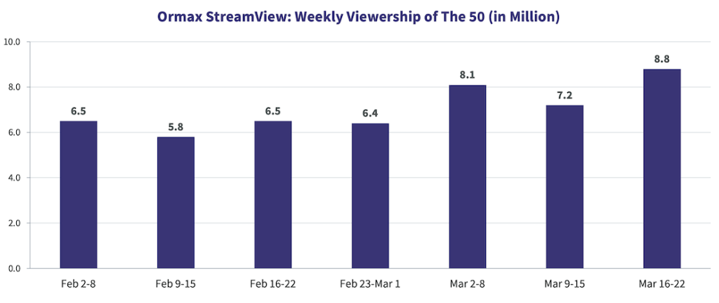 According to an Ormax Media study based on its StreamView data, the recently concluded ‘The 50’ garnered an estimated unduplicated viewership of over 13 million across its seven-week run. The report highlights how the show consistently ranked as the second most-watched streaming property in India during its run, just behind the ICC Men’s T20 Cricket World Cup, underlining its strong audience pull in the competitive OTT ecosystem.
