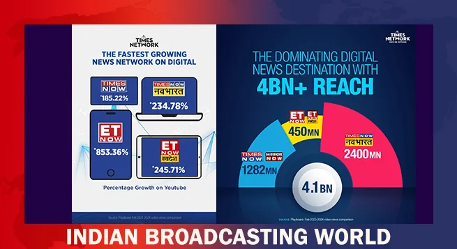 In a resounding testament to its unwavering commitment to excellence, Times Network has emerged as the fastest-growing digital news publisher in India. Clocking over 4 billion monthly reach across its array of news channels during February 2023-24, Times Network has solidified its position as the foremost destination for credible, accurate, and decisive news and analysis across various categories.