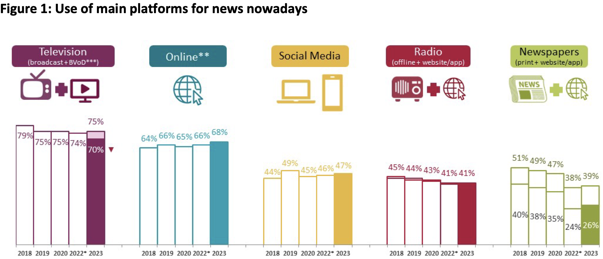 Ofcom’s News Consumption in the UK 2022/23 report reveals that older teens and young adults aged 16-24 are much more likely to consume news online than adults generally (83 percent vs. 68 percent). And usually, it’s via social media on their mobile phones (63 percent vs 39 percent).
