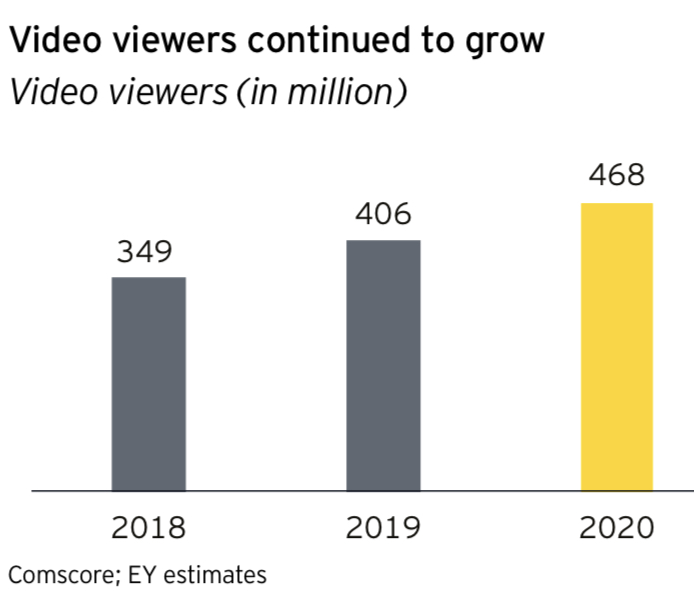 Paid video subscriptions crossed 50 million for the first time, while audio subscription grew comparatively slower at 15% in 2020 as several free products were available that reduced the need to subscribe.