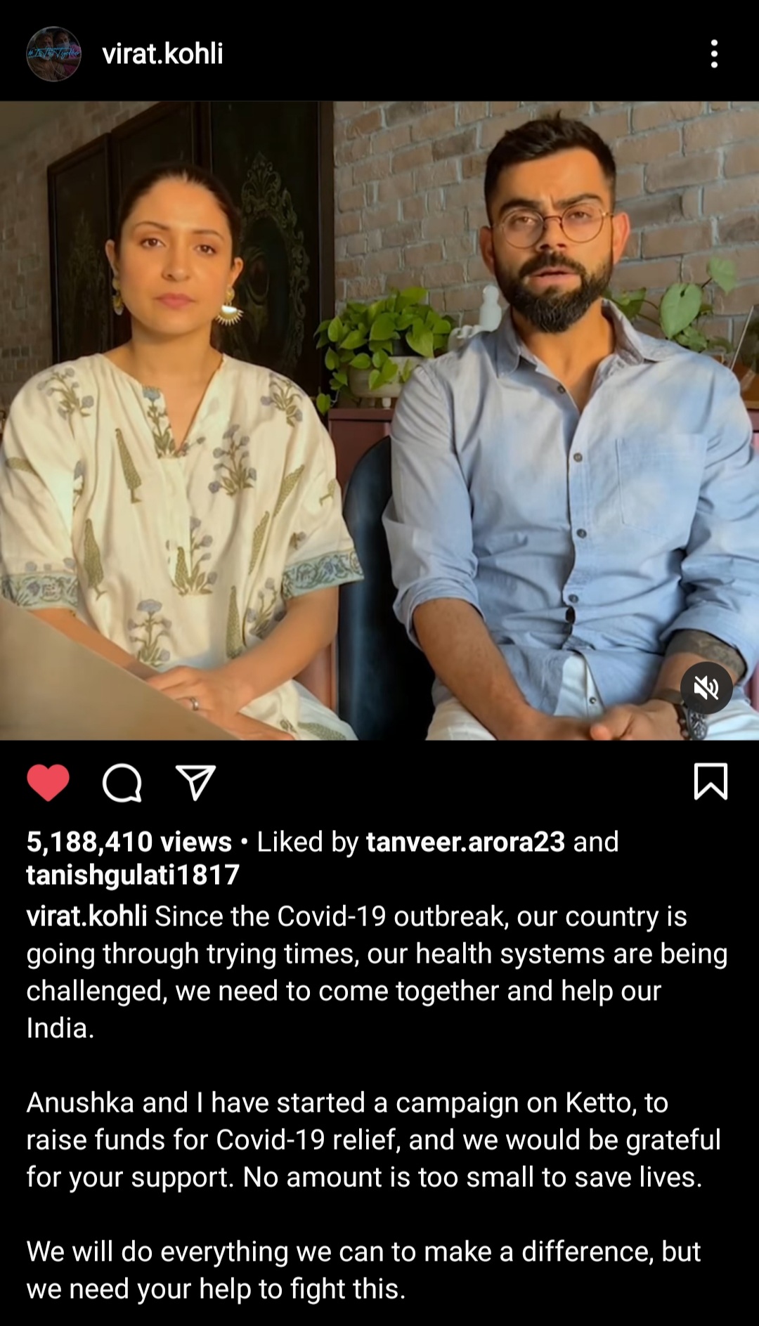 The Couple shared a video on their Instagram handle for sharing the news with their fans, where Anushka and Virat talk about the crises which were held in India.